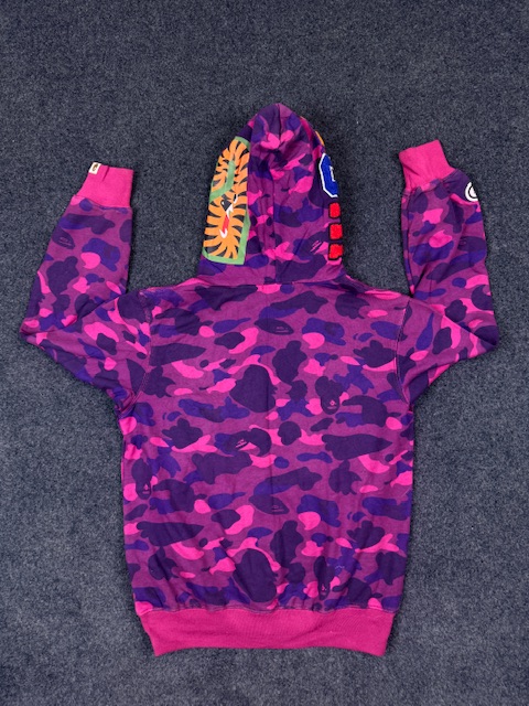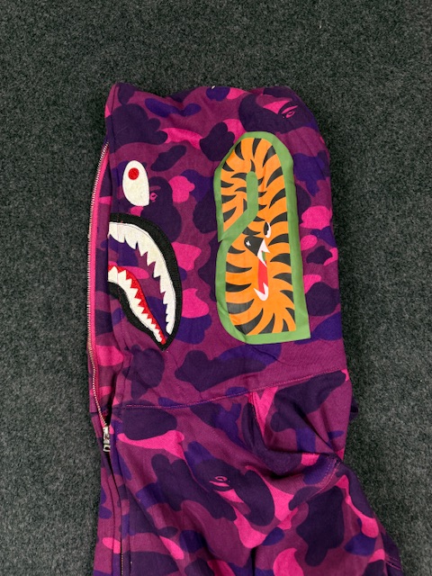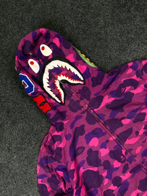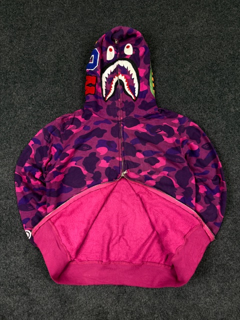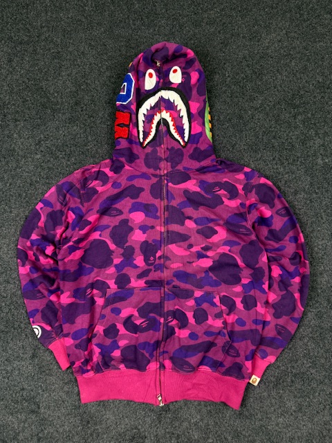 A Bathing Ape (BAPE) Purple Camo Shark Full Zip Hoodie – XL