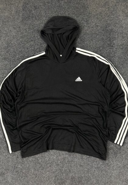 High-performance Adidas Primegreen AEROREADY hooded training top designed for comfort and everyday workouts. Made with moisture-absorbing fabric that keeps you dry and fresh during training. Lightweight, breathable, and soft on skin with a relaxed athletic fit. Features the iconic 3-stripe sleeves, adjustable hood, and minimal Adidas branding for a sporty look. Perfect for gym, warm-ups, casual wear, or active lifestyle.