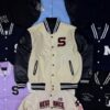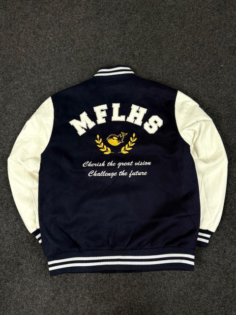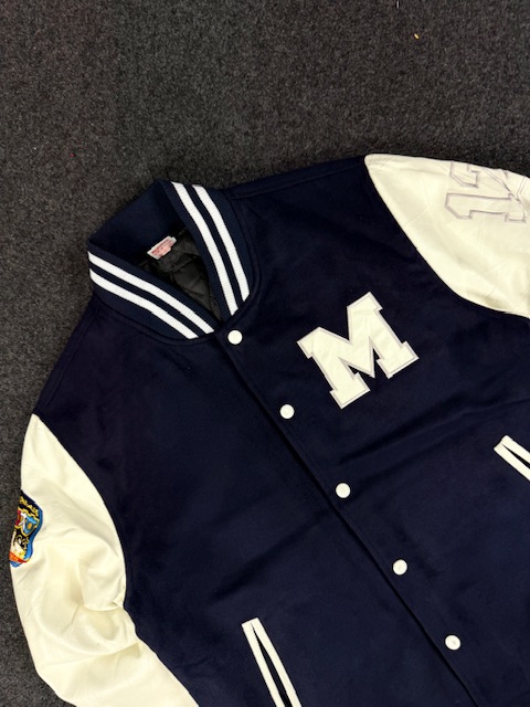 NAVY BLUE AND WHITE VARSITY JACKET – LARGE