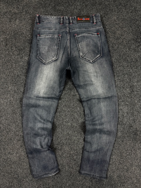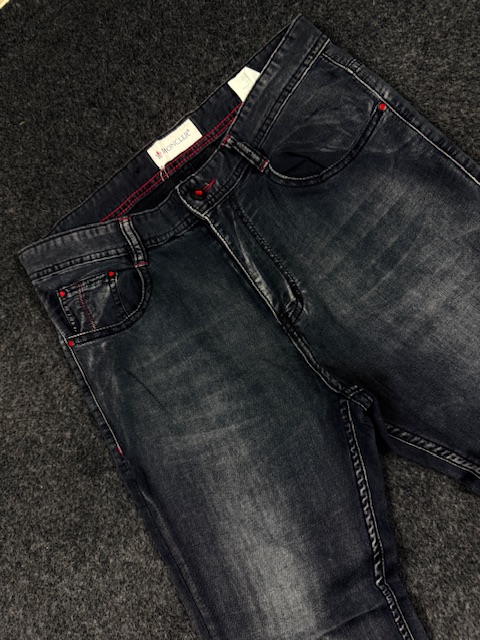 Elevate your wardrobe with these premium Moncler Gamme Bleu jeans from the iconic French luxury line, featuring a sophisticated dark grey wash, subtle fading, and signature red stitching details for understated elegance. Crafted from high-quality denim with a slim-tapered fit that hugs the thighs and gently tapers to the ankle, offering modern comfort and refined style. Highlights include classic 5-pocket construction, button fly, contrast red interior accents, Moncler branding on the waistband, and durable rivets. Perfect for luxury casual looks, pairing effortlessly with blazers, sweaters, or sneakers—ideal for city streets, travel, or elevated everyday wear with that unmistakable Moncler prestige.