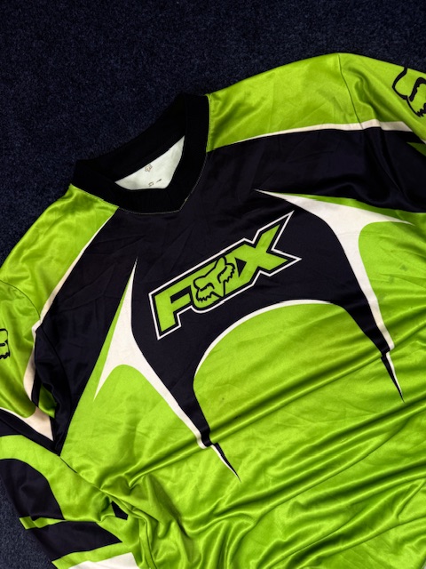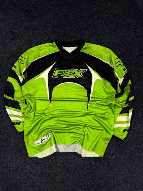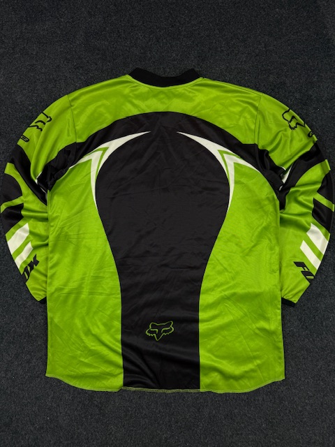Made from lightweight breathable mesh performance fabric, designed for motocross, dirt biking, ATV riding, and other high-movement sports. Features large Fox logo on chest and sleeve graphics with classic racing panel design.