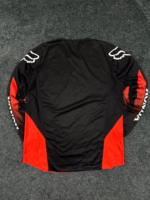 This performance motocross jersey features large Honda wing logo on front and Fox branding on sleeves & collar. Made from lightweight breathable mesh fabric, perfect for high-intensity riding, motocross, ATV, dirt biking, or streetwear layering.
