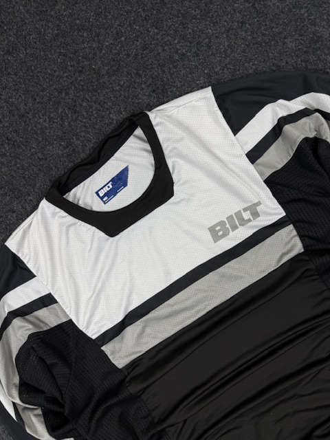 Made with breathable mesh panels, this jersey is designed for airflow and comfort during motorcycle riding, motocross, or outdoor sports activities. Features BILT branding on chest and sleeves with sporty contrast panel design.