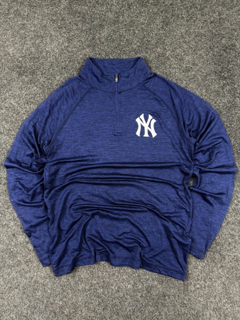 Crafted in lightweight performance fabric, this navy pullover features the iconic NY Yankees logo on the chest and a clean athletic silhouette — perfect for casual wear, gym layering, or everyday styling.