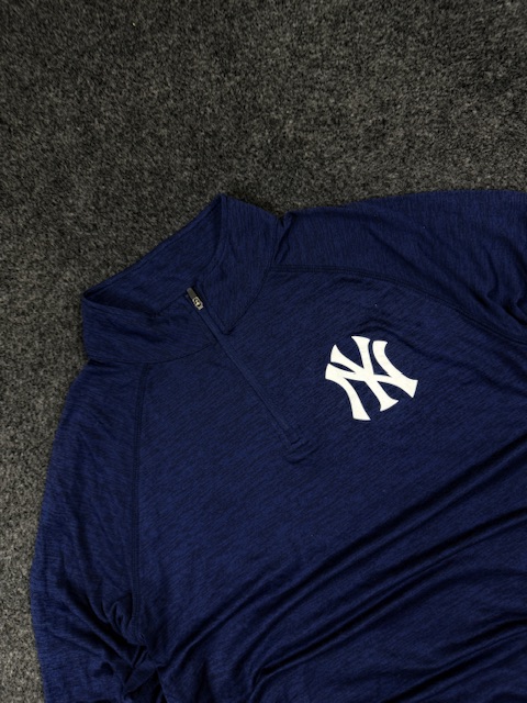 Upgrade your sporty streetwear collection with this New York Yankees quarter zip pullover by Majestic.