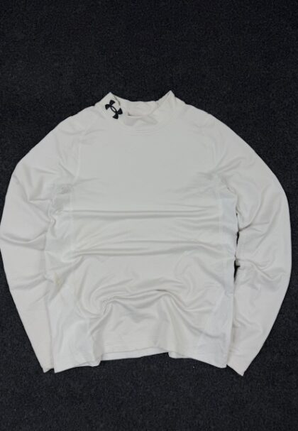 Original Under Armour ColdGear fitted compression top in clean white color. Stretchy, breathable fabric designed to keep you warm while training or layering in winter. Perfect for gym, sports, or innerwear use.