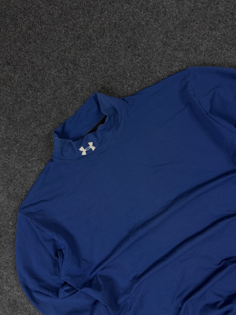 Premium Under Armour ColdGear mock neck top in rich blue colour. Super stretchy performance fabric with moisture-wicking and body-fit comfort. Ideal for gym, winter workouts, layering, and daily activewear. Clean look with excellent stretch and warmth.